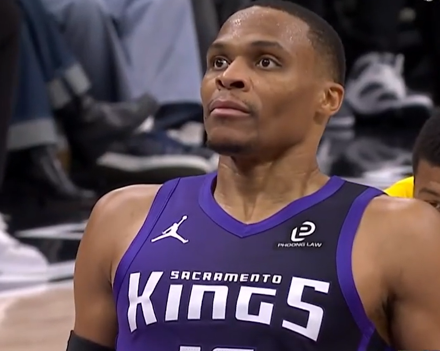 第二节当比分来到国王35-31湖人后,国王队逐渐将比分拉开。蒙克三分命中,东契奇抛投得分,阿丘瓦在内线打进,蒙克的三分又进了,德罗赞背转身挑篮也进,国王领先12分。随后东契奇为湖人连得4分,蒙克抛投打成了2+1。湖人得分还是靠东契奇,罚球2罚都进,蒙克的三分再进,4中4了!东契奇继续罚球,威少也进三分,蒙克三分线外还有!16分的分差。